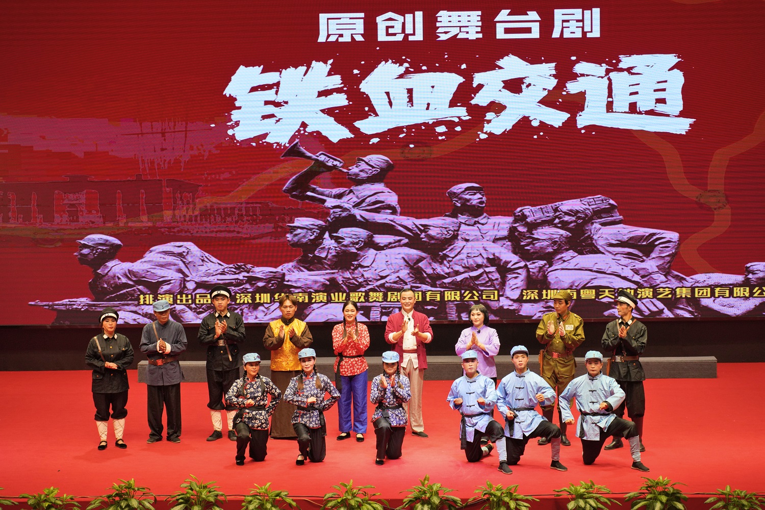 原创舞台剧《铁血交通》剧目讲述的是革命战争时期,上海临时党中央到中央苏区有一条地下交通线,被誉为摧不夸打不烂的地下航线。党内叛徒投靠敌人并破坏了秘密交通站,剧中余妈妈英勇牺牲,女儿玉梅和交通员们强忍悲愤,交通员们与敌智斗,最后完成了党的中央机关重大转移,安全护送一批党中央领导和党、政、军负责同志及无线电设备、技术等人员到达中央苏区,被誉为"中央红色交通线"。
