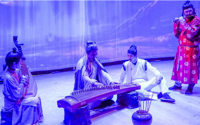 原创舞台剧《诗画乐舞唱千年》剧情讲述古诗人在诗文中穿越时空轨道回到遥远的古都。就如田间夜深人静蛙声清泉,在鸟鸣涧与大师讨教作画秘法,与春秋古音乐家伯牙切磋琴技唱响“高山流水觅知音”及古琴魅力;在郊外山水间与书法家探究书法的奥意一醉千古绝和汉字发源书法的风采;远处看到李白与杜甫畅饮作诗吟唱,感悟到大词人李清照情感交错……整部舞台剧以古诗为题材深挖背后的故事,描绘出大中国古文化博大精深。