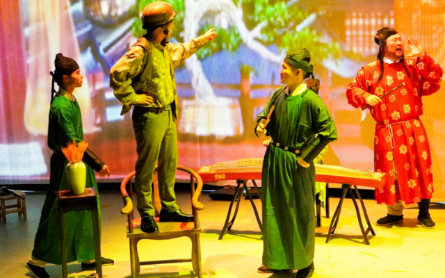 原创舞台剧《诗画乐舞唱千年》剧情讲述古诗人在诗文中穿越时空轨道回到遥远的古都。就如田间夜深人静蛙声清泉,在鸟鸣涧与大师讨教作画秘法,与春秋古音乐家伯牙切磋琴技唱响“高山流水觅知音”及古琴魅力;在郊外山水间与书法家探究书法的奥意一醉千古绝和汉字发源书法的风采;远处看到李白与杜甫畅饮作诗吟唱,感悟到大词人李清照情感交错……整部舞台剧以古诗为题材深挖背后的故事,描绘出大中国古文化博大精深。